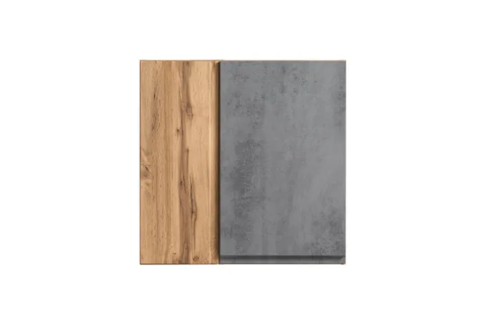 Der Bad-Hängeschrank GENT hellgrau/braun 65 cm hat zwei unterschiedlich breite Drehtüren mit Soft-Close-Technik.