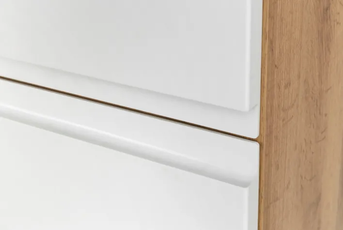 Farbe: WeißDekorfarbe: EicheMaterial: HolznachbildungOberflächenbeschichtung: foliert