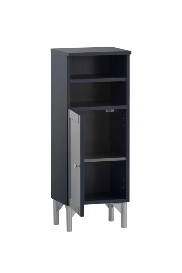 Der Unterschrank für das Bad präsentiert sich in einem modernen Design und überzeugt durch seine funktionalen Eigenschaften. Mit einer Breite von 30,3 cm, einer Höhe von 70 cm und einer Tiefe von 25,4 cm bietet er ausreichend Stauraum für diverse Badutensilien. Der Schrank ist in einem eleganten Nachtblau gehalten, das dem Raum eine stilvolle Note verleiht. Die Holznachbildung sorgt für eine robuste und pflegeleichte Oberfläche.