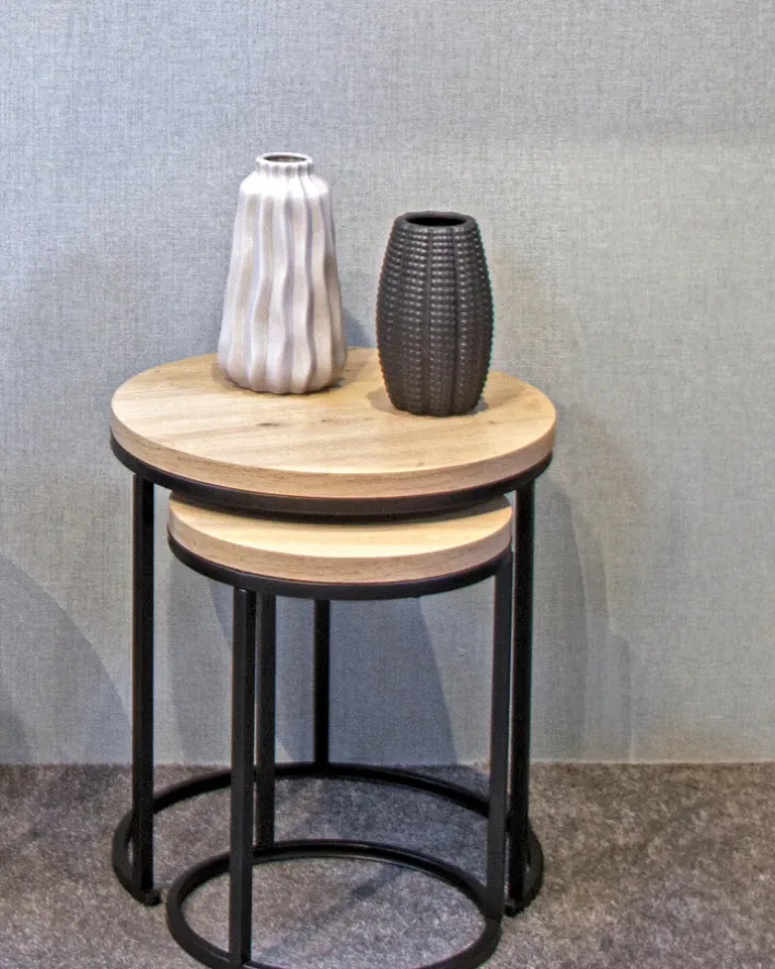 Das LEVI Beistelltisch 2er-Set aus Eiche-Dekor-Tischplatten mit schwarzem Rahmen bringt zusammen, was zusammengehört: Der kleinere Tisch misst 32 cm Durchmesser, passend dazu wird der größere Tisch mit 45 cm Durchmesser kombiniert. Beide können bei Bedarf natürlich auch getrennt voneinander, nebeneinander oder sogar leicht überlappend zueinander eingesetzt werden.
