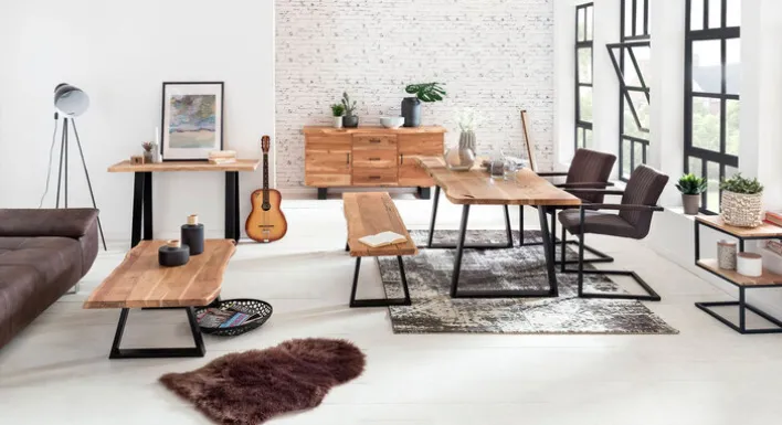 Die raffinierte S-Form und das moderne Industrial Design verleihen dem Beistelltisch eine ansprechende Optik. Das matt schwarze Gestell aus pulverbeschichtetem Eisen sorgt für eine hohe Stabilität und ergänzt sich optimal mit dem hellen Braun der beiden Tischplatten. Diese bestehen aus massivem Akazienholz und bieten ausreichend Platz für spannende Lektüre, Snacks, Getränke oder die Fernbedienung. Nicht nur im Wohnzimmer macht der 60 cm hohe Tisch eine gute Figur, auch als origineller Nachttisch oder praktische Ablage im Flur eignet er sich hervorragend.