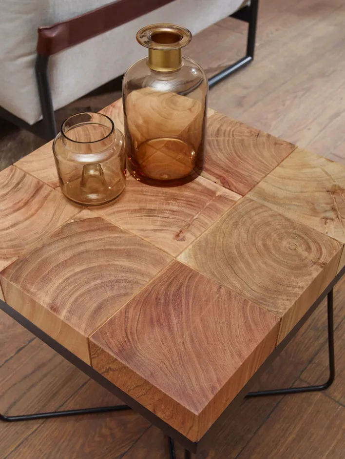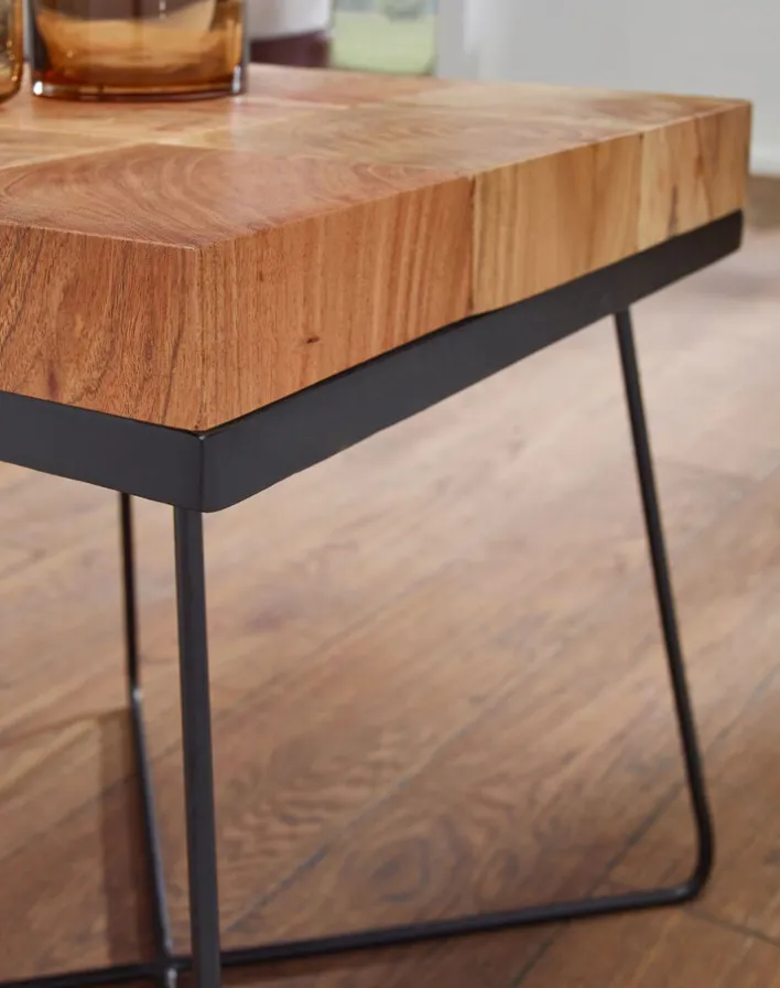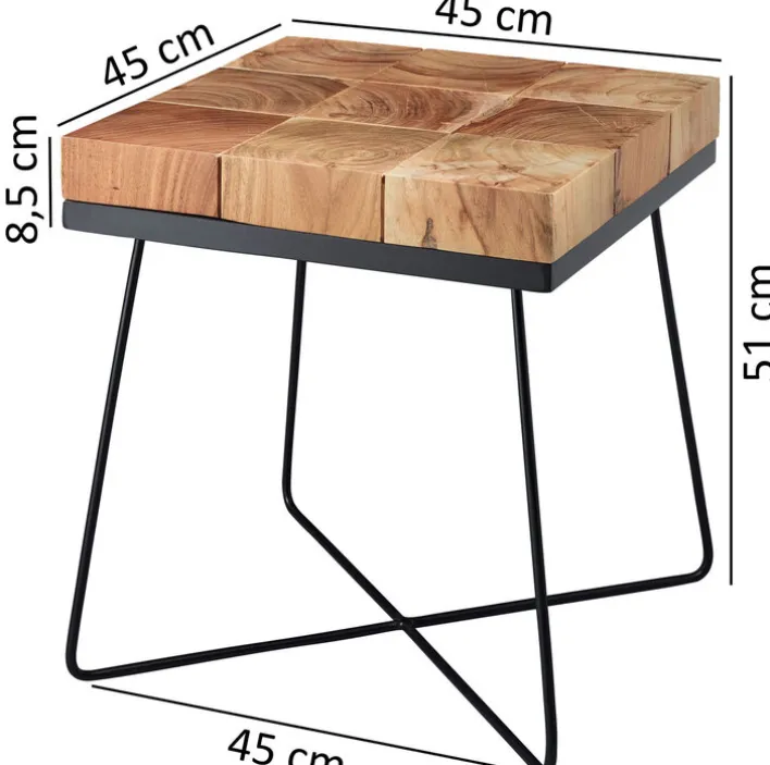 Mit dem ausgefallenen Beistelltisch, welcher in der Größe 45 x 45 cm gefertigt und aus dem Holz Akazie in Schwarz designt ist, lässt sich im Interieur zusätzliche Ablagefläche gewinnen. Der Beistelltisch verleiht dem Wohnzimmer eine exotische Note. Des Weiteren kann er im Esszimmer – zum Beispiel für die Aufbewahrung von Flaschen und Gläsern – verwendet werden.