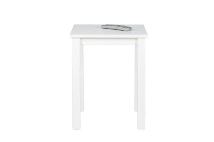 Der weiße Beistelltisch HOLGER hat mit den Maßen 45 Zentimeter Breite, 55 Zentimeter Höhe und 45 Zentimeter Tiefe sowohl im Wohnzimmer als auch im Gästezimmer Platz. Das Vierfußgestell garantiert eine gute Standsicherheit.