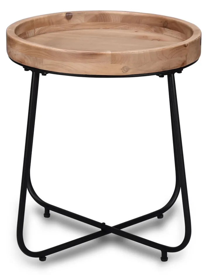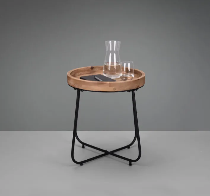 Der runde Beistelltisch JIL ist vielseitig einsetzbar. Er kann als Sofatisch verwendet werden oder als Nachttisch. Sein schwarzes Kufengestell aus Metall und die Tischplatte aus Holz machen ihn zu einem Blickfang. Da ein breiter Rand vorhanden ist, kann nichts vom Tisch rutschen. So kann er Ablage für verschiedene Dekoarrangements sein oder ein Buch, die Kaffeetasse oder ein Weinglas bequem in Reichweite bereithalten.