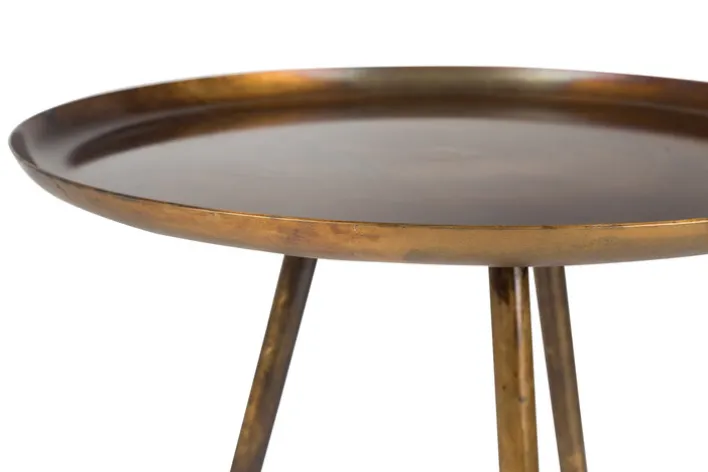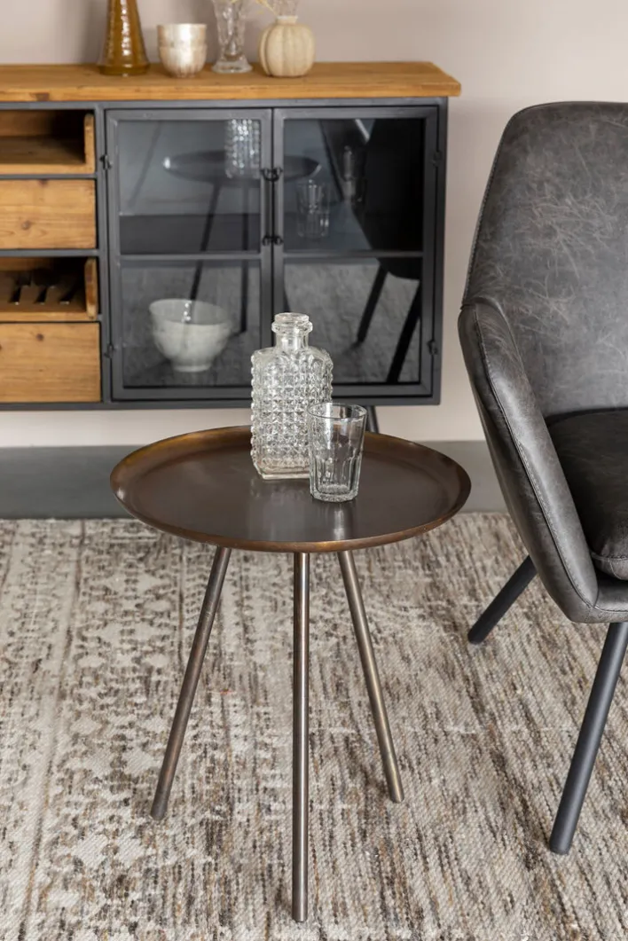 Der elegante Beistelltisch LANDO mit den Maßen 48 x 46 cm hat einen skandinavischen Look und passt in moderne Wohnbereiche. Durch die runde Tischplatte mit Rand und das Dreibein fällt der kupferfarbige Tisch sofort ins Auge und schafft dadurch zahlreiche Gestaltungsmöglichkeiten. In Kombination mit verschiedenen Accessoires wie Deko, Vasen oder Grünpflanzen ist der schöne Beistelltisch ein optischer Blickfang und rundet in Wohn- und Esszimmern die Einrichtung ab.