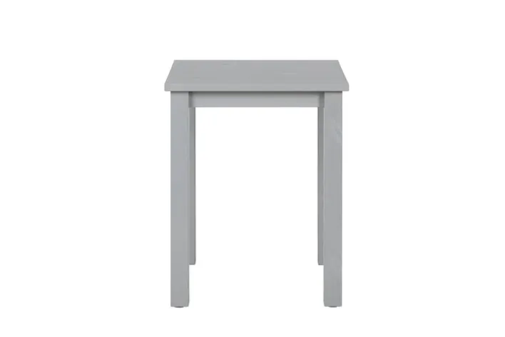 Der rechteckige Beistelltisch mit der zeitlosen grauen Lackierung besteht aus massivem Kiefernholz. So harmoniert er mit sämtlichen farblich neutral gehaltenen Einrichtungen in modern gestalteten Landhäusern und hat auf seinen vier Füßen einen stabilen Stand. Seine unaufdringliche Optik erlaubt außerdem Kombinationsmöglichkeit mit farbenfrohen Tischdecken, Wohnaccessoires und Blumen.