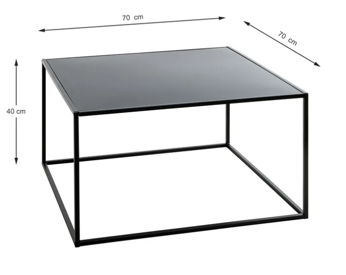 Der Beistelltisch MELBOURNE hat die quadratischen Maße von 70 x 70 cm bei einer Höhe von 40 cm und wurde aus schwarz lackiertem Metall gefertigt. Durch sein minimalistisches Design wirkt dieser Beistelltisch elegant und zierlich, was einen deutlichen Kontrast zum stabilen Material Metall bildet.