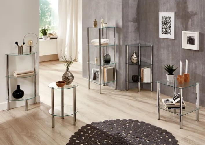 Drei stabile Stahlrohre in hochglänzender Gestaltung bilden das Gestell. Aus klarem Sicherheitsglas entstehen die Tischplatte sowie der untere zusätzliche Boden. Die runde Formgebung findet sich in allen Elementen wieder und führt zu einer ausgewogenen Optik voller Harmonie. Deshalb integriert sich der Beistelltisch leicht in unterschiedliche Wohnraumkonzepte. Viele weitere Möbel sowie passende Accessoires in abgestimmten Farbtönen für einen modernen oder klassischen Einrichtungsstil bieten wir Ihnen in unserem porta! Online Shop an.