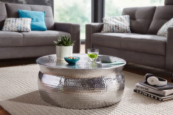 Dank seiner im Durchmesser 75 cm großen Tischplatte bietet der Beistelltisch viel Platz für Zeitschriften, Deko, Gläser und vieles mehr. Wegen jeder Kleinigkeit extra aufstehen zu müssen, ist wegen des von Hand gefertigten Tischs keine Notwendigkeit mehr. Im Vergleich zu vielen anderen Modellen zeichnet den metallischen Beistelltisch vor allem seine große Stabilität aus. Damit eignet er sich besonders für den Einsatz in Haushalten, in denen es gerne mal heiß hergeht.