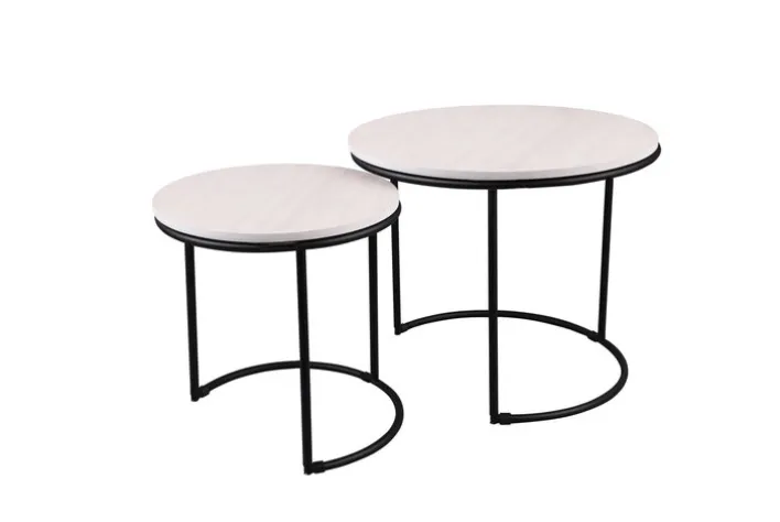 Dekorativ und praktisch – das ist der Beistelltisch DOREEN. Viele kennen das: Neben Sessel oder Sofa fehlt eine Fläche, um rasch etwas abstellen zu können. Mit diesem 2-er Set ist das Problem behoben. Gefertigt ist es aus Faserplatten in Holznachbildung mit weißer Oberfläche. Das Kufengestell besteht aus robustem Metall in Schwarz.