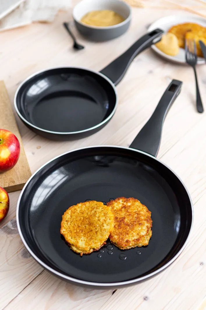 Ein echtes Highlight ist, dass die Pfanne aus 100 % recycelten Aluminium-Dosen gefertigt ist. Außerdem besitzt sie eine nachhaltige b.nature Quarz-Versiegelung. Durch die spezielle Antihaft-Beschichtung kann fettarm gebraten werden und die Pfanne lässt sich leicht reinigen. Sie eignet sich sowohl für den Induktionsherd als auch für alle anderen Herdarten und ist mit einem ergonomischen Design-Kunststoffstiel ausgestattet.