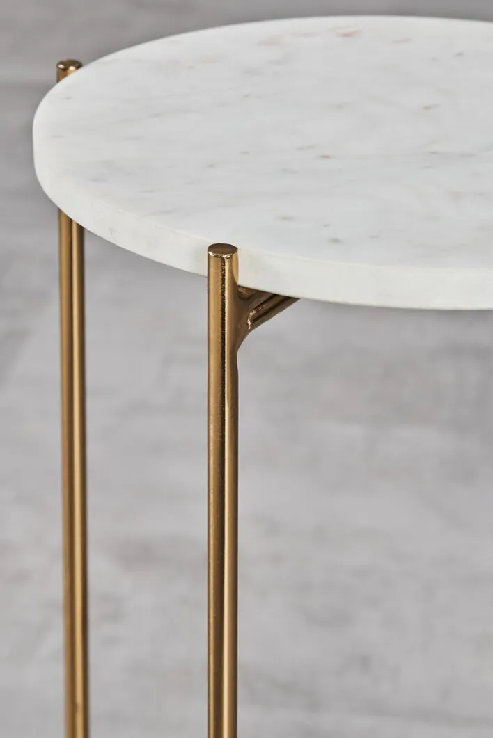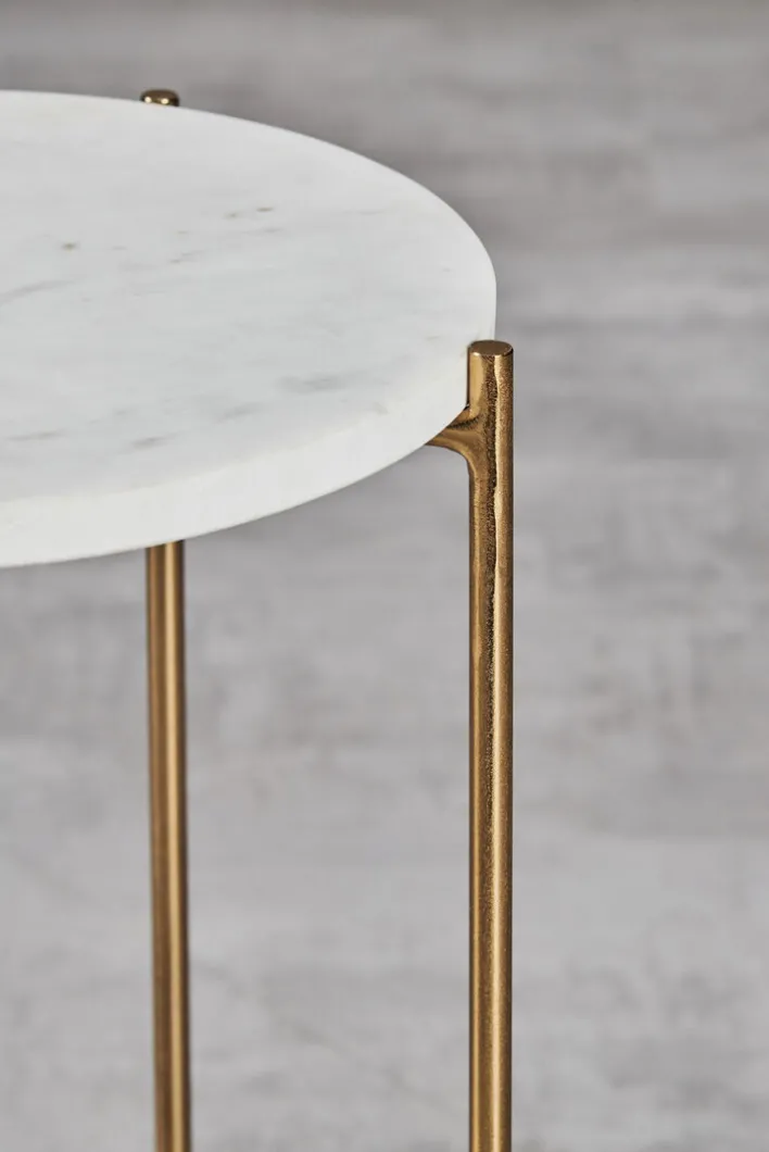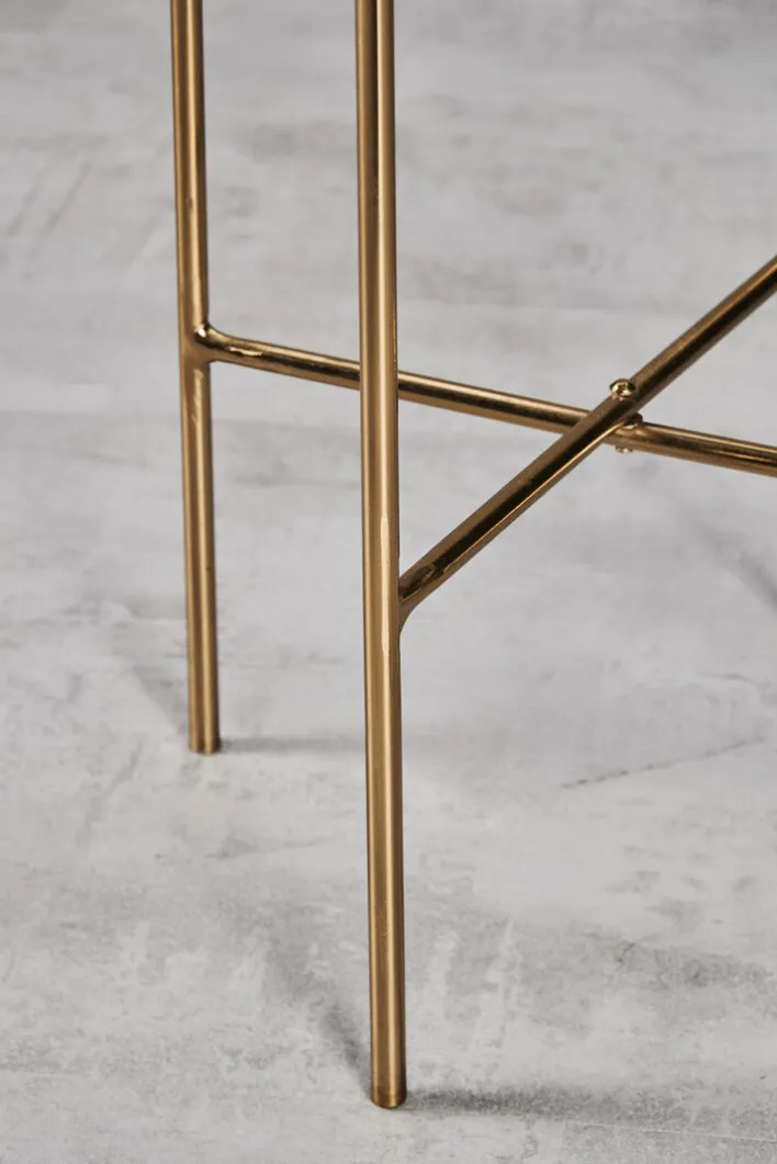 Auf dem modernen Blumenständer ODIANE werden Zimmerpflanzen gekonnt in Szene gesetzt und für den Urban Jungle im eigenen Zuhause verschiedene Höhen geschaffen. Der runde Tisch mit goldfarbigem Fixgestell aus Eisen und den Maßen 29,5 x 50 cm ist mit einer weißen oder grünen Marmorsteinplatte erhältlich.