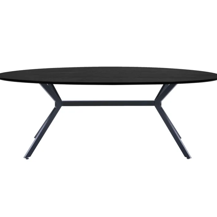 Der ovale BRUNO Esstisch misst 220 x 75 cm und präsentiert sich in elegantem Schwarz. Dank seiner großzügigen Abmessungen ist er ideal für Familien und alle, die gerne Gäste bewirten.