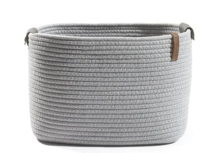 Der Aufbewahrungskorb von casaNOVA ist aus hellgrauem Mischgewebe in Seiloptik gefertigt. Die rechteckige Form des Korbs ist 32 Zentimeter breit, 22 Zentimeter tief und bietet bei einer Höhe von 26 Zentimetern viel Platz für allerlei Dinge.