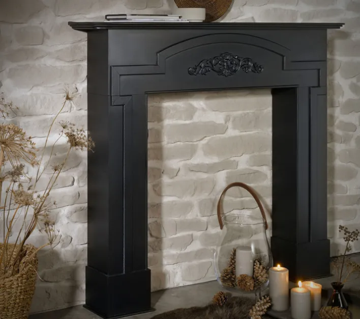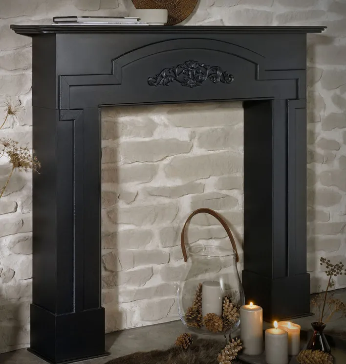 Die schwarze Kaminumrandung MITTERNACHT mit den Maßen 122 x 103 cm verleiht einer leeren Wand den Stil eines englischen Landhauses und bringt einen Hauch Romantik in Ihre Wohnräume. Ein Kamin mit einem offenen Feuer erzeugt eine ganze besondere Atmosphäre. Allen, die auf diese wunderschöne Stimmung bisher verzichten mussten, wird die Kaminumrandung aus dem Hause casaNOVA ein Lächeln ins Gesicht zaubern. Dieses Produkt ist ein absoluter Blickfang und kreiert ein behagliches Flair in Ihrem Zuhause, ganz ohne Schmutz und Ruß. Mit einer Länge von 20 cm bietet die schwarze Kaminumrandung MITTERNACHT ausreichend Platz für eine ansprechende Dekoration. Bringen Sie die Bilder Ihrer Liebsten oder wertvolle Andenken aus dem Urlaub perfekt zur Geltung. Auf dem Boden vor der Kaminumrandung runden brennende Kerzen oder leuchtende Windlichter das Gesamtbild harmonisch ab. Die stabile schwarz Holznachbildung passt hervorragend zum Landhausstil oder bildet einen bewussten Kontrast zu einer klaren und modernen Einrichtung.
