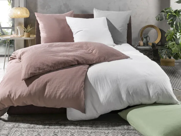 Die Baumwoll-Bettwäsche GRETA von casaNOVA eignet sich hervorragend als Bezug für Polster und Bettdecke im Schlafzimmer. Die verwendeten Naturfasern sorgen für ein angenehmes, natürliches Schlafgefühl. Die Bezüge sind trocknergeeignet und bei 40 °C waschbar. Im Lieferumfang enthalten sind ein Bettbezug und ein Kopfkissenbezug mit den Maßen 135 x 200 cm und 80 x 80 cm.