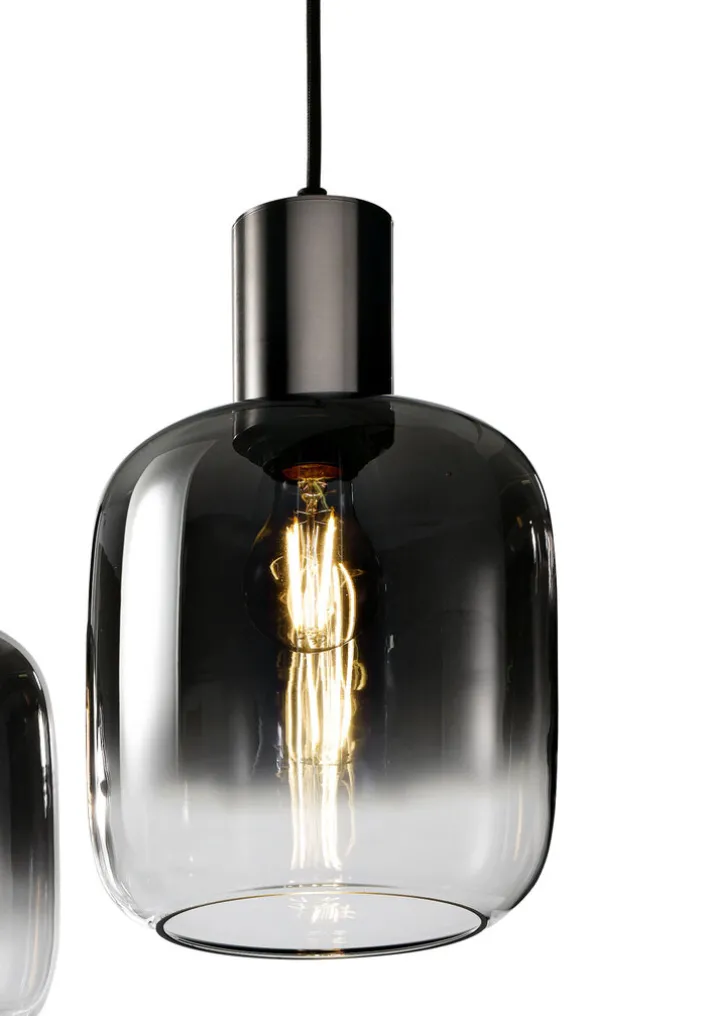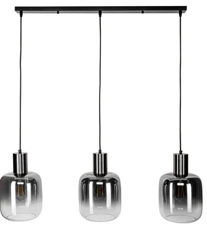 Das 3-flammige casaNOVA Retrofit Balkenpendel SVENJA besteht aus insgesamt 3 parallel aneinander gereihten Pendelleuchten. Jede dieser separaten Brennstellen ist für die Aufnahme eines AGL- oder Retrofit-Leuchtmittels mit E27-Sockel geeignet. Futuristisch anmutenden Glaszylinder umgeben die Leuchtmittel jeweils mit einer außergewöhnlichen Mischung aus transparentem und grau gefärbtem Glas. So ergibt sich eine weitgehend blendfreie Lichtabstrahlung in Verbindung mit einer durchaus interessanten Ästhetik. Das casaNOVA Retrofit Balkenpendel SVENJA ist in der Höhe einstellbar und aufgrund seiner Form und Pendellänge gut als Esszimmer- oder Wohnzimmerleuchte in Innenräumen mit relativ hoher Raumhöhe geeignet.