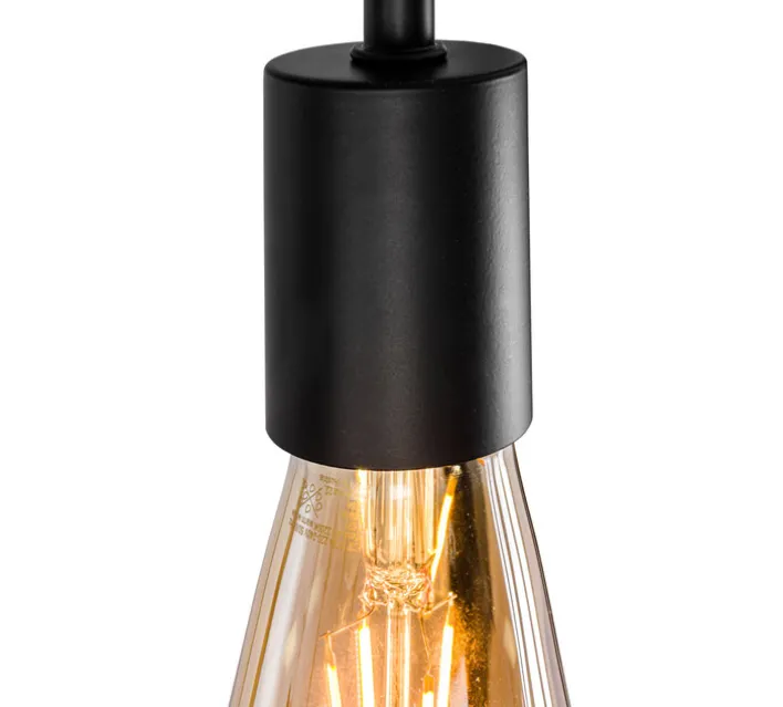 Die casaNOVA Retrofit Hängelampe HAMPER besteht aus einer Lampenbasis mit Pendel, einem langen Rechteck aus schwarzem Metall, das als Lampenschirm fungiert und vier E27 Fassungen. Mit ihrem stilvollen Industrie Design ist die CE-geprüfte Hängelampe perfekt für modern eingerichtete Esszimmer geeignet, passt aber auch in ein klassisches Ambiente. Bei der Erstmonate lässt sich die Höhe zwischen 0 und 150 cm einstellen, ein späteres Verstellen ist allerdings nicht mehr möglich. Für angenehm helles Licht kann die Hängelampe mit vier AGL/Retrofit Glühbirnen mit je 40 Watt ausgestattet werden.