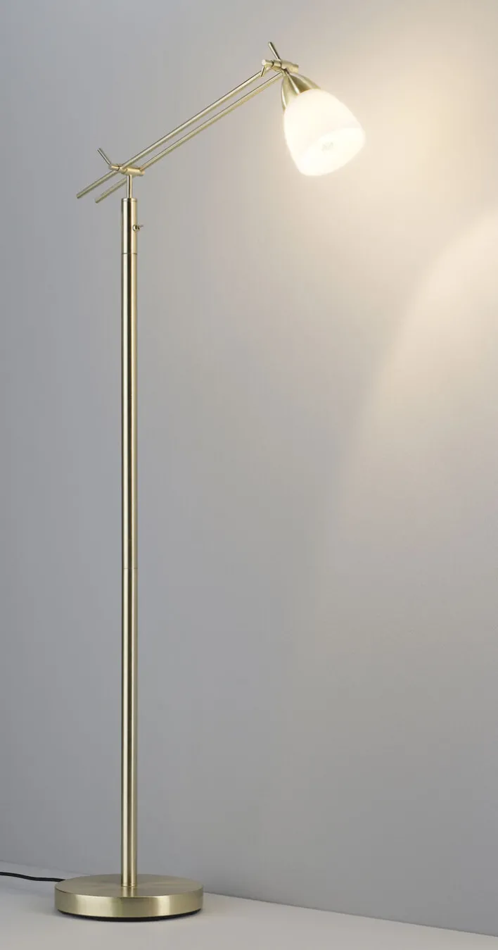 Der Fuß und das Gestell der casaNOVA Retrofit Stehlampe CURO sind aus robustem Metall gefertigt und bieten so eine stabile Basis für die elegante Stehlampe. Der Lampenschirm zeigt sich hingegen in einer klassischen Form. Er besteht aus weißem Opalglas mit einer matten Oberfläche und dämpft so das Licht sanft ab. Sie können die casaNOVA Retrofit Stehlampe CURO mit einem 60 Watt Retrofit oder 12 Watt LED Leuchtmittel kombinieren und so auf sehr energiesparende Art und Weise nutzen.