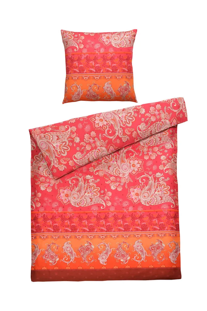 Mit SURI präsentiert die Marke casaNOVA eine stilvolle, rostfarbige Bettwäschegarnitur im eleganten Paisley-Stil. Diese besteht aus Satin und ist 135 cm breit und 200 cm lang.