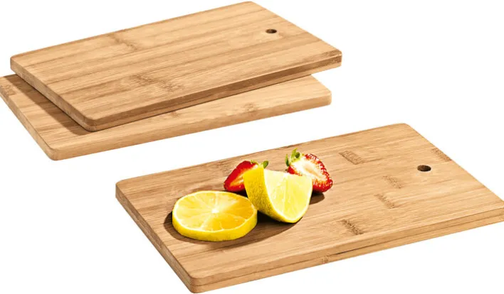 Die soliden Schneidebretter sind aus unbehandeltem Hartholz gefertigt. Die Oberflächen und die Seiten sind glatt geschliffen und die Kanten sind abgerundet. Sie sind hygienisch und lebensmittelecht. Zum Aufhängen in einen Ständer sind die Schneidebretter mit einem Loch ausgestattet.