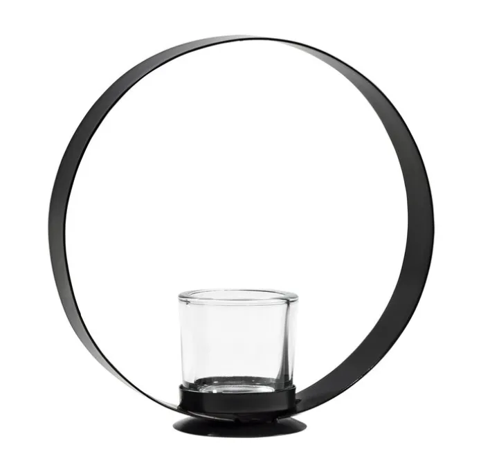 Der moderne casaNOVA Teelichthalter mit einer Höhe von 21 cm im edlen Farbton Schwarz zieht die Aufmerksamkeit auf sich und bringt flackerndes Kerzenlicht hervorragend zur Geltung. Der schwarzfarbige Teelichthalter von casaNOVA aus Aluminium ist ein Blickfang auf Tischen, Theken und Kommoden. Das Accessoire macht als Einzelstück ebenso eine gute Figur wie in einer Gruppe von mehreren, versetzt zueinander platzierten Teelichthaltern des gleichen Designs. Der 20,5 cm breite und 7,2 cm tiefe Teelichthalter mit dem markanten Kreis lädt dazu ein, mit Wahrnehmungen und Perspektiven zu spielen. In dem transparenten Glas lassen sich wahlweise echte Kerzen oder LED-Lichter platzieren. Ein runder Sockel verleiht dem Teelichthalter eine hohe Standfestigkeit.