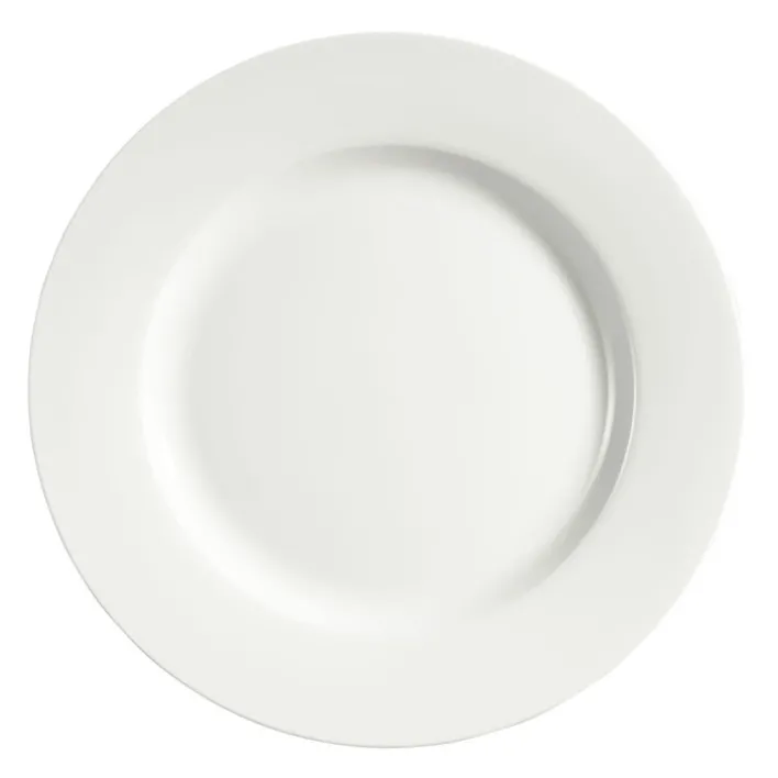 Der flache casaNOVA Teller aus der Serie MARINA weist einen Durchmesser von 26,6 cm auf. Er besteht vollständig aus weißer Keramik Bone China.