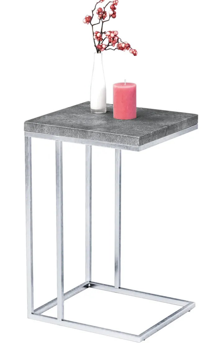 Der Beistelltisch der Serie GUIDO von Casavanti vereint modernes Design mit praktischer Funktionalität. Mit einer Breite von 38 cm, einer Höhe von 63 cm und einer Tiefe von 43 cm bietet er ausreichend Platz für Dekorationen oder alltägliche Gegenstände. Der Tisch besteht aus hochwertigem Edelstahl und ist verchromt, was ihm eine elegante, chromfarbige Optik verleiht. Die Tischplatte in grauer Steinoptik ergänzt das stilvolle Erscheinungsbild und sorgt für einen modernen Akzent in jedem Raum.