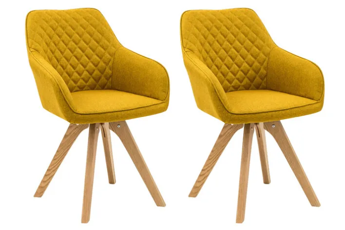 Der 2er Set Esszimmerstuhl von CASAVANTI zeichnet sich durch ein ansprechendes und modernes Design aus. Die Stühle haben Beine aus massiver Eiche. Die Sitzflächen sind mit Bezügen in Currygelb versehen. Weitere Farben sind erhältlich.