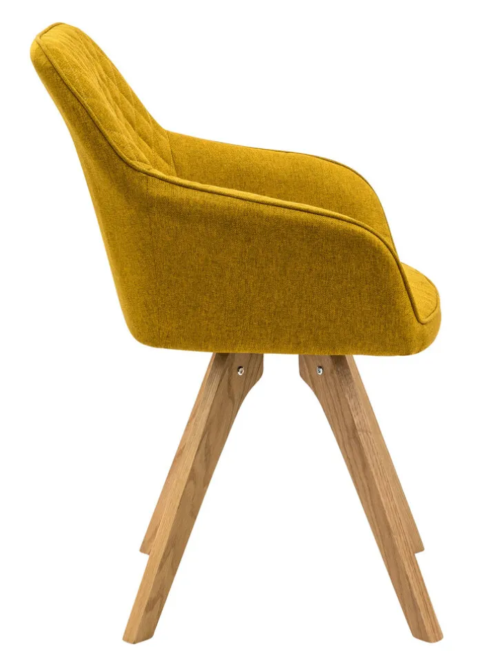 Das Esszimmerstuhl 2er Set von CASAVANTI fügt sich harmonisch ins Esszimmer oder den Essbereich der Küche ein. Das Currygelb der Polyester-Bezüge machen sie zu einem Blickfang und sorgt für gute Laune. Eine dekorative Rautensteppung vervollständigt das Design. Das massive Eichengestell rundet das Gesamtbild ab. Auf den Stühlen mit fester Armlehne sitzt man bequem und verweilt so gerne auch einmal länger am Tisch und genießt die Mahlzeiten.