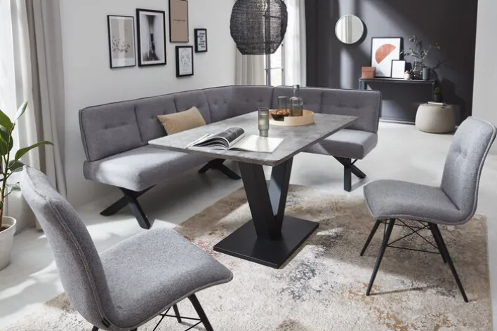 Beim CASAVANTI Stuhl MIA gehen extravagantes Designkonzept und zeitgemäßer Sitzkomfort Hand in Hand: Das Gestell dieses Stuhls besteht aus Metall, dessen Oberflächen in klassischem Schwarz pulverbeschichtet sind. Zusätzliche Verstrebungen zwischen den 4 Füßen sorgen nicht nur für eine belastbare Stabilität, sondern unterstreichen auch die filigrane Optik. Die darauf aufgesetzte Kombination aus Sitzfläche und Rückenlehne ist angenehm weich gepolstert und mit einem strapazierfähigen Stoffbezug in dezentem Hellgrau bezogen. Damit eignet sich der CASAVANTI Stuhl MIA für eine Vielzahl von Einsatzorten wie am Esstisch, in der Küche oder im Besprechungszimmer.