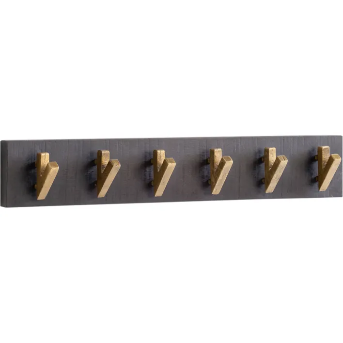 Dank der Tatsache, dass die Garderobe aus robustem Mangoholz gefertigt wurde, ist sie sehr stabil und hält es auch aus, wenn einige Kleidungsstücke an ihr hängen. Die schwarze Farbgebung des Hauptteils der Garderobe sorgt im Zusammenspiel mit den in einem goldfarbenen Ton gehaltenen Haken für einen interessanten Kontrast, der in jedem Raum gut wirkt.