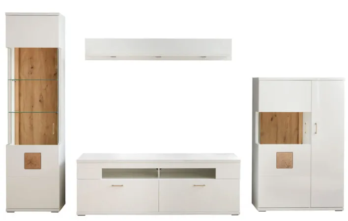 Setartikel: jaAnzahl Teile im Set: 4 Stk.Breite Setartikel 1: 55 cmHöhe Setartikel 1: 208,6 cmTiefe Setartikel 1: 37 cmSetartikel-Inhalt 1: VitrineAnzahl Setartikel-Inhalt 1: 1 Tiefe Setartikel 2: 50,2 cmBreite Setartikel 2: 165 cmHöhe Setartikel 2: 57,4 cmSetartikel-Inhalt 2: TV-LowboardAnzahl Setartikel-Inhalt 2: 1 Tiefe Setartikel 3: 26 cmBreite Setartikel 3: 160 cmHöhe Setartikel 3: 24 cmSetartikel-Inhalt 3: PaneelablagebodenAnzahl Setartikel-Inhalt 3: 1 Breite Setartikel 4: 90 cmHöhe Setartikel 4: 141,4 cmSetartikel-Inhalt 4: HighboardAnzahl Setartikel-Inhalt 4: 1 Tiefe Setartikel 4: 37,4 cmAnzahl Schubkästen inklusive: 2Anzahl Beleuchtungen inklusive: KeineAnzahl Einlegeböden inklusive: 10Anzahl Drehtüren inklusive: 5Anzahl offene Fächer inklusive: 2