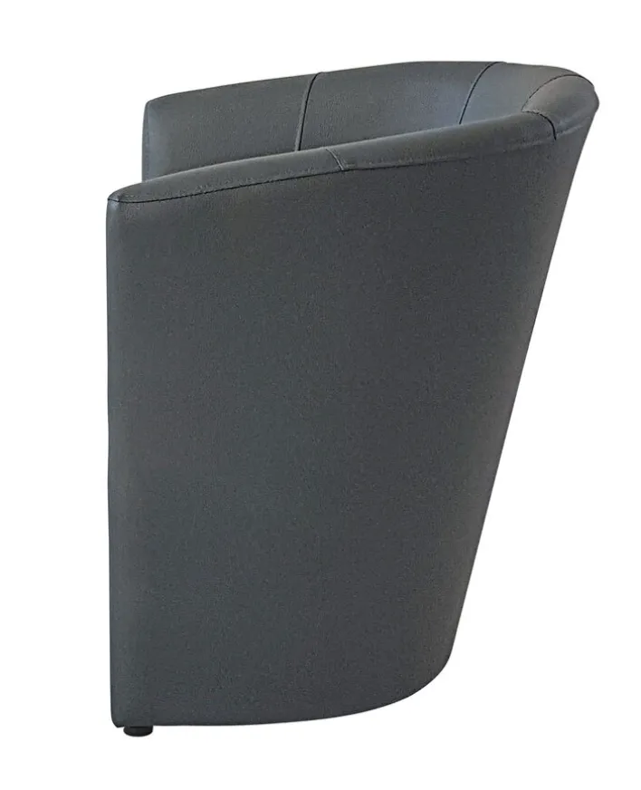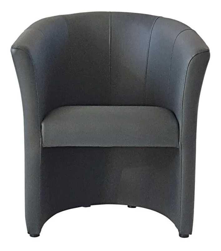 Dieser Cocktailsessel BLAINE zeigt graues Kunstleder. Die Sitzhöhe des Möbels beträgt 45 cm. Seine Breite liegt bei 67 cm, die Höhe beträgt 76 cm und die Tiefe 59 cm.