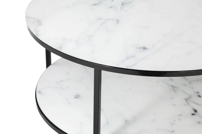 Der runde, 80 x 80 cm große Couchtisch in Schwarz / Weiß richtet sich an alle, die das Besondere lieben und zu schätzen wissen. Mit seiner edlen Marmor-Optik strahlt er eine absolut zeitlose Eleganz aus.