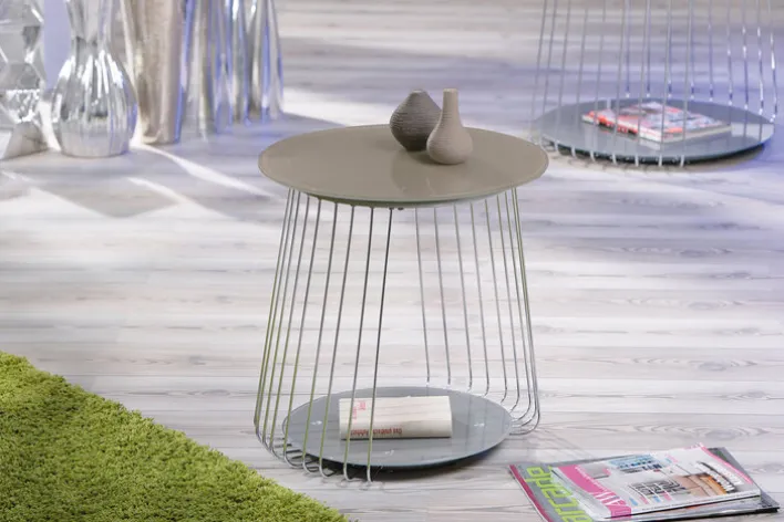 Der Couchtisch ELIAS kombiniert die Farbtöne Cappuccino und Silber und lässt sich mit modernen Möbeln aller Art kombinieren. Die runde Platte ist aus robustem Sicherheitsglas gefertigt und kann zum Abstellen von Drinks oder zum Platzieren dekorativer Wohnaccessoires genutzt werden. Das Gestell aus schmalen Metallstäben lässt den Tisch leicht und luftig wirken. So wird das praktische Möbelstück zum Hingucker.