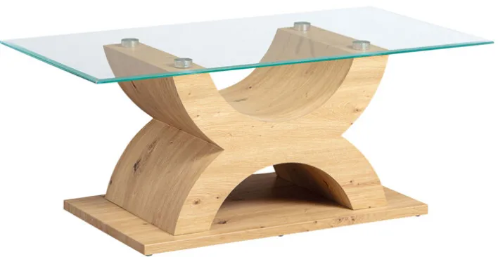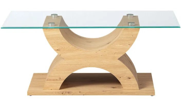 LUKE verfügt über eine elegante Tischplatte aus Sicherheitsglas und begeistert mit vielen Ablagemöglichkeiten. Fernbedienungen, Zeitschriften und Co. finden nämlich nicht nur auf der Tischplatte Platz, sondern auch in den beiden Rundungen des x-förmigen Gestells! So herrscht im Wohnzimmer immer Ordnung! Der Couchtisch passt vor allem zu einem zeitgemäßen und jungen Wohnstil, allerdings harmoniert das Wildeiche Dekor auch sehr gut mit dem Skandi- und Landhaus-Stil. Ein edles Stück, das alle Blicke auf sich zieht!