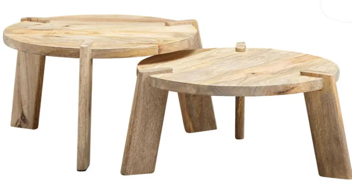 Der Couchtisch mit seinen zwei unterschiedlichen Höhen passt aufgrund des hellen Mango-Holzes perfekt in die verschiedenen Wohnbereiche und lässt sich mit den verschiedenen Couches und Sesseln hervorragend kombinieren. Die verspielt wirkende 2er Kombination aus Tischen bietet dem Auge Abwechslung und bricht die oftmals starre Wohnlandschaft angenehm auf.