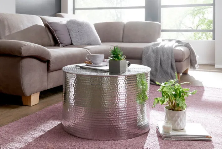 Speziell für den hohen Anspruch an Stil und Design ist der runde, nickel-/silberfarbene Couchtisch mit einem Durchmesser von 61 cm aus Metall kreiert. Die Hammerschlag-Optik sowie das insgesamt geschlossene Design-Konzept machen aus diesem Couchtisch einen einzigartigen, exklusiven und extravaganten Hingucker.