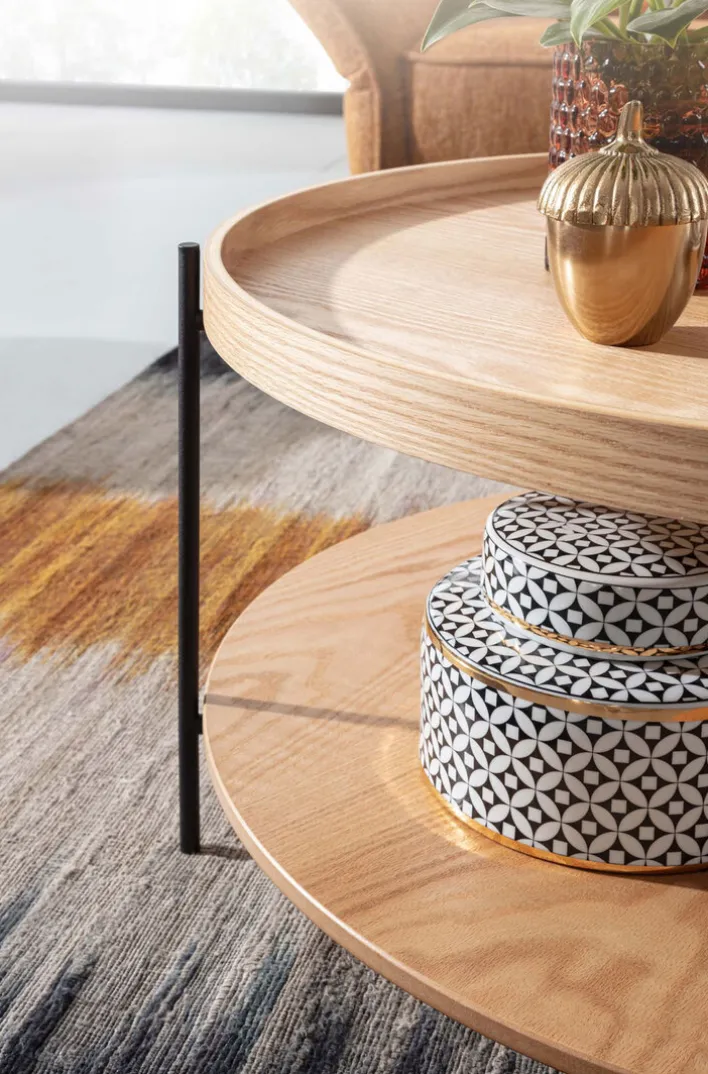 Moderner Couchtisch rund in Schwarz und Eiche – Stilvolles Design für Ihr Wohnzimmer