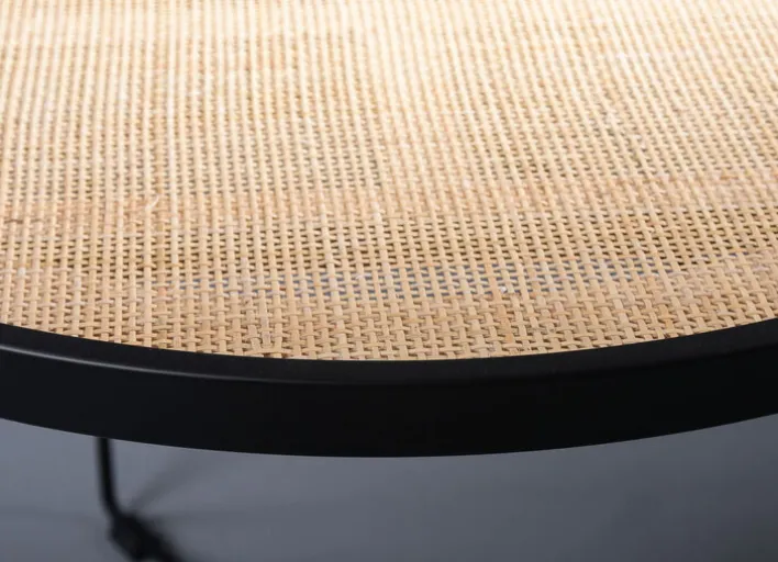 Eine schlichte Formensprache und ausgefallene Materialkombination verleihen dem Couchtisch LORENZ mit 58 cm Durchmesser ein ganz besonderes Flair. Das schwarze Metallgestell kommt in Kombination mit der runden Tischplatte aus braunem Rattangeflecht hervorragend zur Geltung.