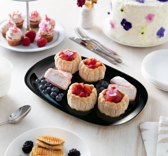 Der schwarze Grillteller ist Teil der Serie ITALIEN PARTY. Er ist aus Glas und rechteckig. Auf der Tellerlänge von 34 cm lassen sich Grillspeisen und Fingerfood gut anrichten. Der Teller ist spülmaschinenfest und mikrowellengeeignet. Gut stapeln lässt er sich auch. Damit bringt das Geschirr ausgezeichnete Voraussetzungen mit für eine unkomplizierte, gesellige Grillparty.