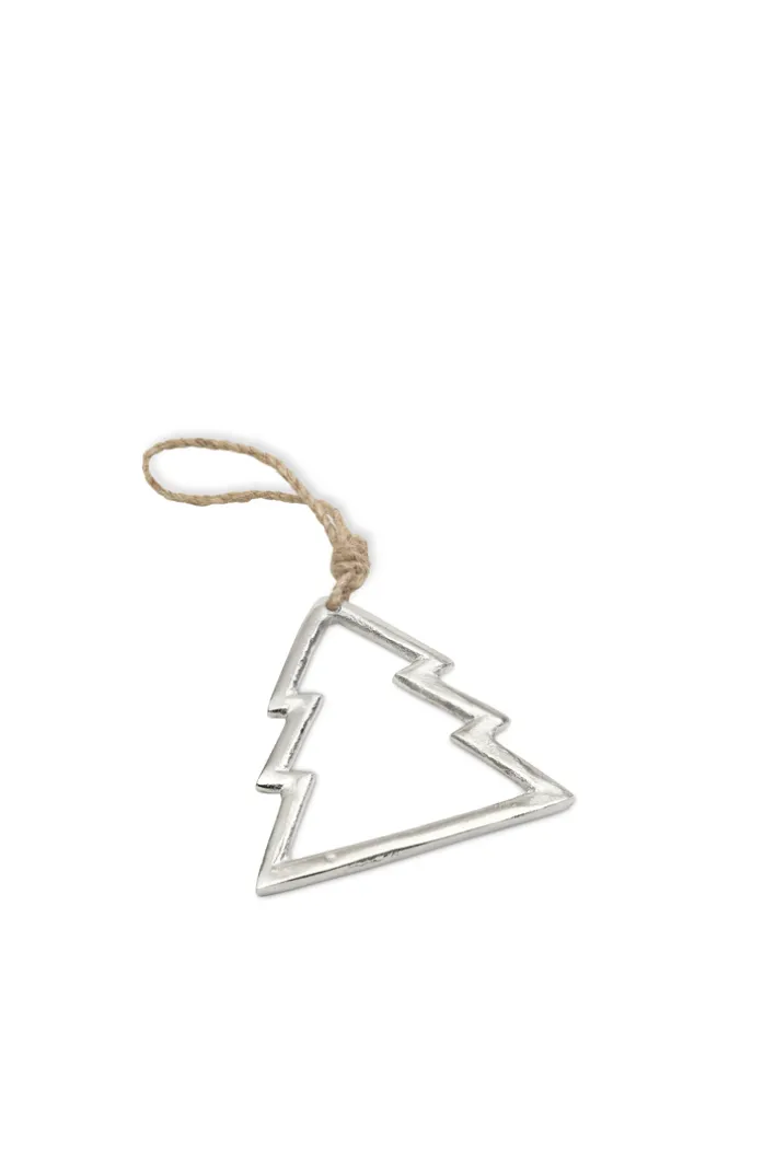 Der Deko Anhänger aus der Serie BLACK FORREST besteht aus silberfarbenem Aluminium und eignet sich für den Einsatz im Innenbereich. Das minimalistische Design zeigt die stilisierte Kontur eines Tannenbaums, die klar und geometrisch ausgeführt ist. Die Oberfläche wirkt leicht glänzend und glatt, mit dezenten Strukturen, die den metallischen Charakter betonen. Die Maße betragen 11 cm in Breite sowie 11 cm in Höhe, bei einer sehr geringen Ausladung von 0,5 cm. Ein naturfarbener Aufhänger aus Kordel ist bereits integriert und ermöglicht eine einfache Befestigung. Die moderne Formgebung und das schlichte Material machen diesen Anhänger zu einem vielseitigen Dekorationselement für verschiedene Anlässe.