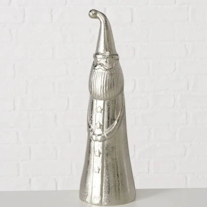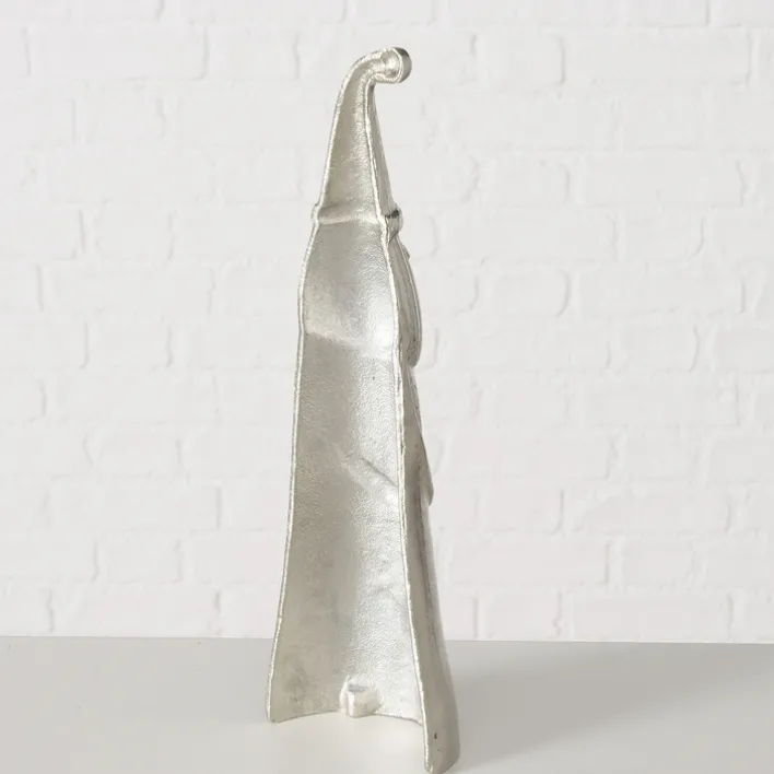 Das Design der Figur besticht durch seine klare Form und die detailreiche Gestaltung. Die Oberfläche zeigt eine feine Struktur, die dem Metall eine besondere Haptik verleiht. Die Figur eignet sich hervorragend als Blickfang auf dem Tisch oder der Fensterbank und bringt einen Hauch von festlichem Glanz in Ihr Zuhause.