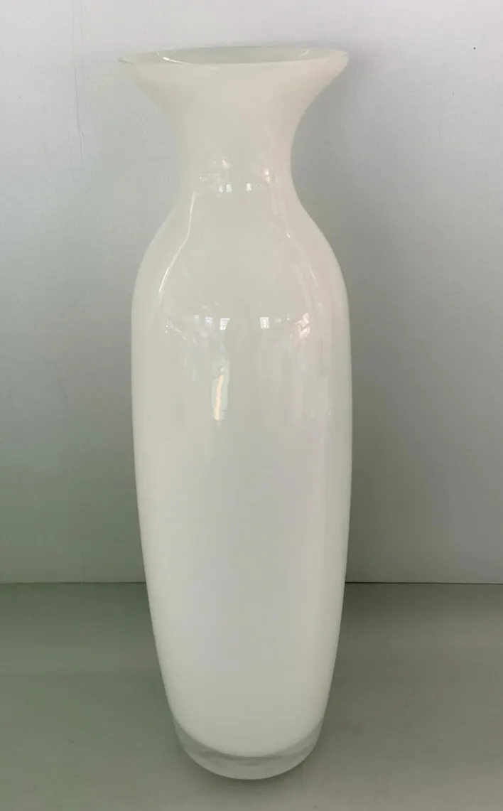 Die bauchige Deko Vase besteht aus weißem Glas und besticht mit einem schlichten Design ohne Schnörkel. Mit ihrer klaren Form und Farbe liegt die Blumenvase genau im Trend und macht zu jeder Jahreszeit eine gute Figur. Mit 40 cm Höhe lässt sich die Glasvase auf Tischen, Sideboards und Fensterbänken ebenso verwenden wie auf dem Boden.