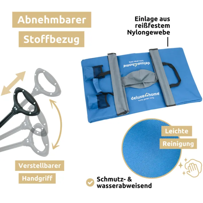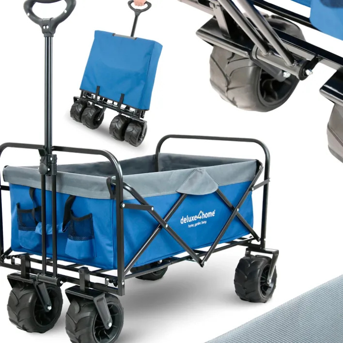 Der Bollerwagen BENNY von deluxe4home hat die Maße 60 x 100 cm und ist der perfekte Begleiter für den Alltag, Ausflüge oder auf Reisen. Durch den geräumigen Innenraum ist der Wagen in den Farben blau /grau zum Einkaufen oder auch für ein Picknick mit der Familie im Grünen geeignet. Mit dem verstellbaren Handgriff und lenkbaren Rädern mit Feststellbremsen ist der Bollerwagen leicht zu lenken. Der klappbare Bollerwagen ist im Nu aufgebaut und lässt sich platzsparend verstauen.