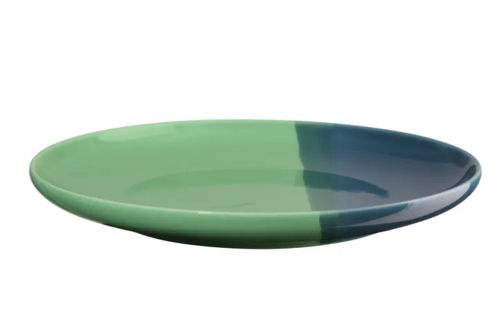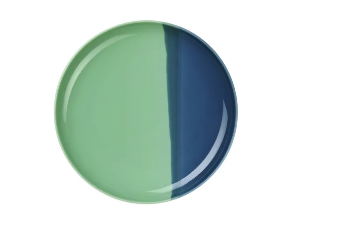 Der Dessertteller aus der Asa-Kollektion besticht durch sein modernes Design und die harmonische Farbkombination aus Blau und Grün. Die zweifarbige Gestaltung verleiht dem Teller eine besondere Ästhetik, die sich ideal in verschiedene Tischdekorationen einfügt. Mit einem Durchmesser von 22 cm und einer Höhe von 2,6 cm bietet er ausreichend Platz für Desserts und kleine Speisen.