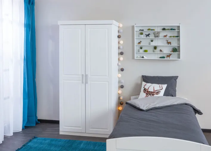 Der Drehtürenschrank LEONARD ist ein Modell in Weiß und wird in der Größe 95 x 190 cm gefertigt. Er kann ganz klassisch in einem Schlafzimmer oder in einem Jugendzimmer aufgestellt werden. Mit seinem charakteristischen Design passt der Schrank sehr gut zu einer Einrichtung im Landhausstil bzw. Scandinavian Chic.