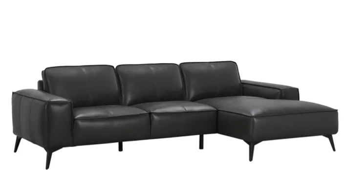 Optisch überzeugt das Sofa durch seine glatte, anthrazitfarbene bis schwarzgraue Oberfläche mit dezentem Glanz und feiner, sichtbarer Nahtführung. Die Oberfläche ist mit einem Bezug in Montana Iron 673 braun-grau gehalten. Die Sitz- und Rückenflächen sind mit Schaumstoff gepolstert und der Rücken ist echt bezogen. Die stabilen, schlanken Füße bestehen aus pulverbeschichtetem Metall in Schwarz, was dem Möbelstück eine moderne und zugleich filigrane Anmutung verleiht. Das Sofa ist für den Wohnbereich, insbesondere das Wohnzimmer, konzipiert.