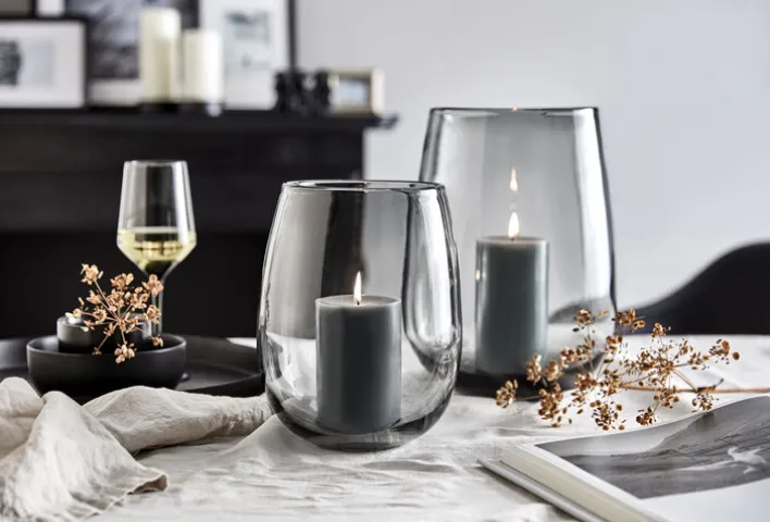 Das runde ENGELS KERZEN Windlicht LEA hat einen Durchmesser von 19 cm und eignet sich für Teelichter und Stumpenkerzen. Selbst befüllt mit zur Jahreszeit passenden Dekorationsartikeln sieht das bauchige Glas edel aus. Der graue Teelichthalter bringt somit das ganze Jahr Eleganz und romantisches Kerzenlicht in Wohnräume sowie Balkon und Terrasse. Für einen besonderen Blickfang lässt sich das bauchige Windlicht mit weiteren Teelichthaltern LEA in unterschiedlichen Farben und Größen kombinieren.